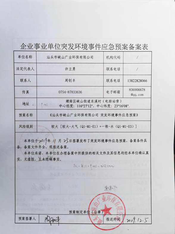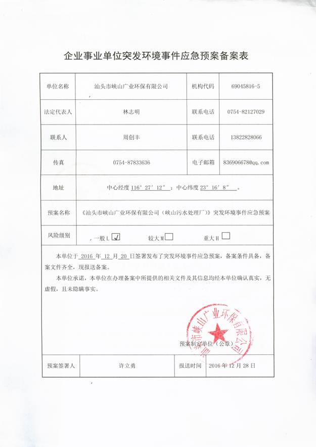 | 廢水 | 出水口 | COD | (DB44/26-2001)一級標準 | 40 | mg/L |